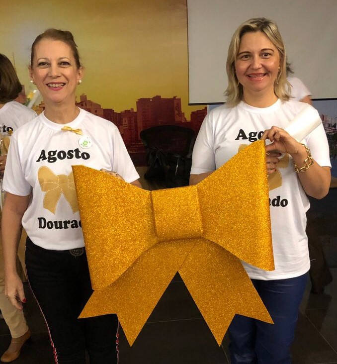 Profª. Dra. Ana Maria e Profª. Doris Silva Barbosa de Souza durante ação em 2019Além da Semana de Aleitamento, agosto também é considerado o mês dedicado ao incentivo a doação de leite materno, celebrado pelo Agosto Dourado. O dourado faz alusão à definição da Organização Mundial da Saúde para o leite materno como alimento de ouro para a saúde dos bebês.