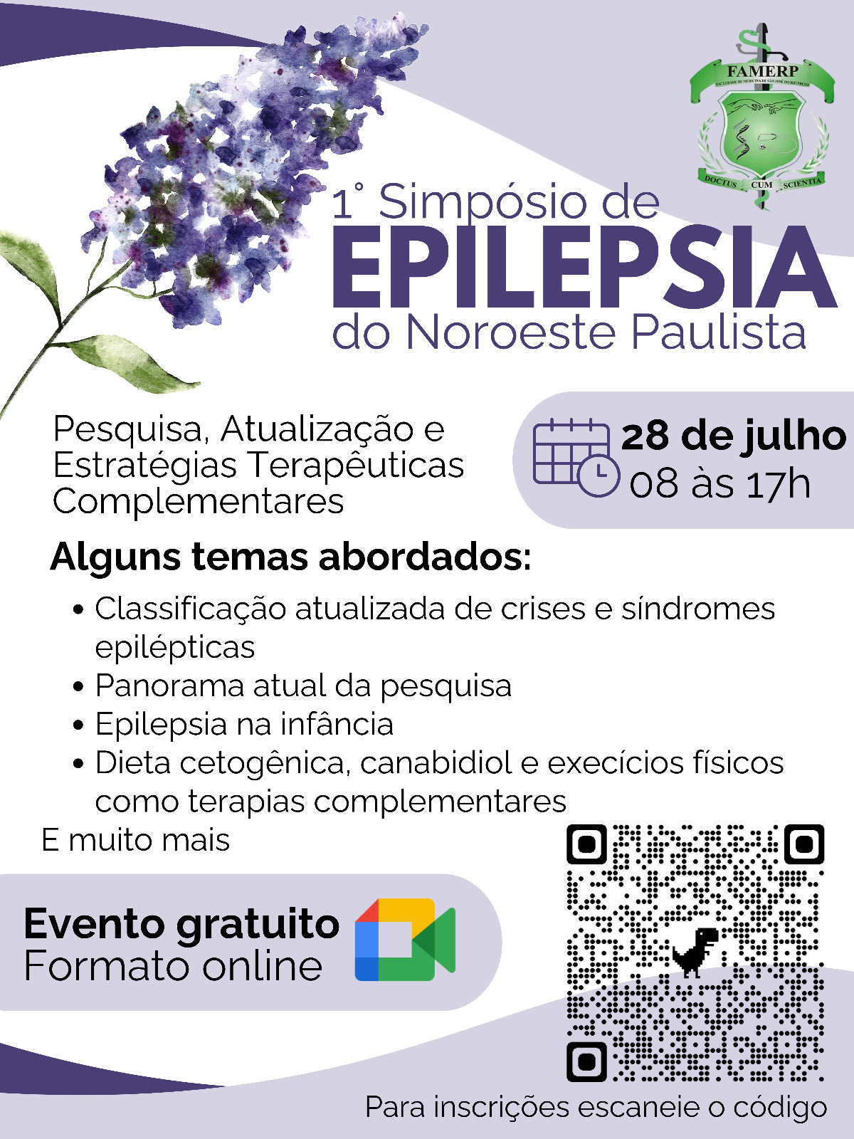 A equipe do Laboratório de Fisiologia Experimental do Departamento de Biologia Molecular da Famerp prepara, para o dia 28 de julho, das 08 às 17h, o “I Simpósio de Epilepsia do Noroeste Paulista: Pesquisa, Atualização e Estratégias Terapêuticas Complementares”. O evento é direcionado aos estudantes e profissionais das áreas da saúde e ciências afins e será transmitido gratuitamente, “ao vivo”, pelo Google Meet.