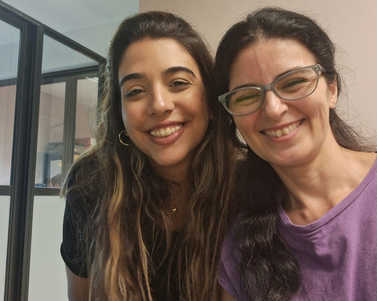 Vitória Moreno e Dra Laís Pardini nas dependências da Universidade Nacional de La Plata, Argentina