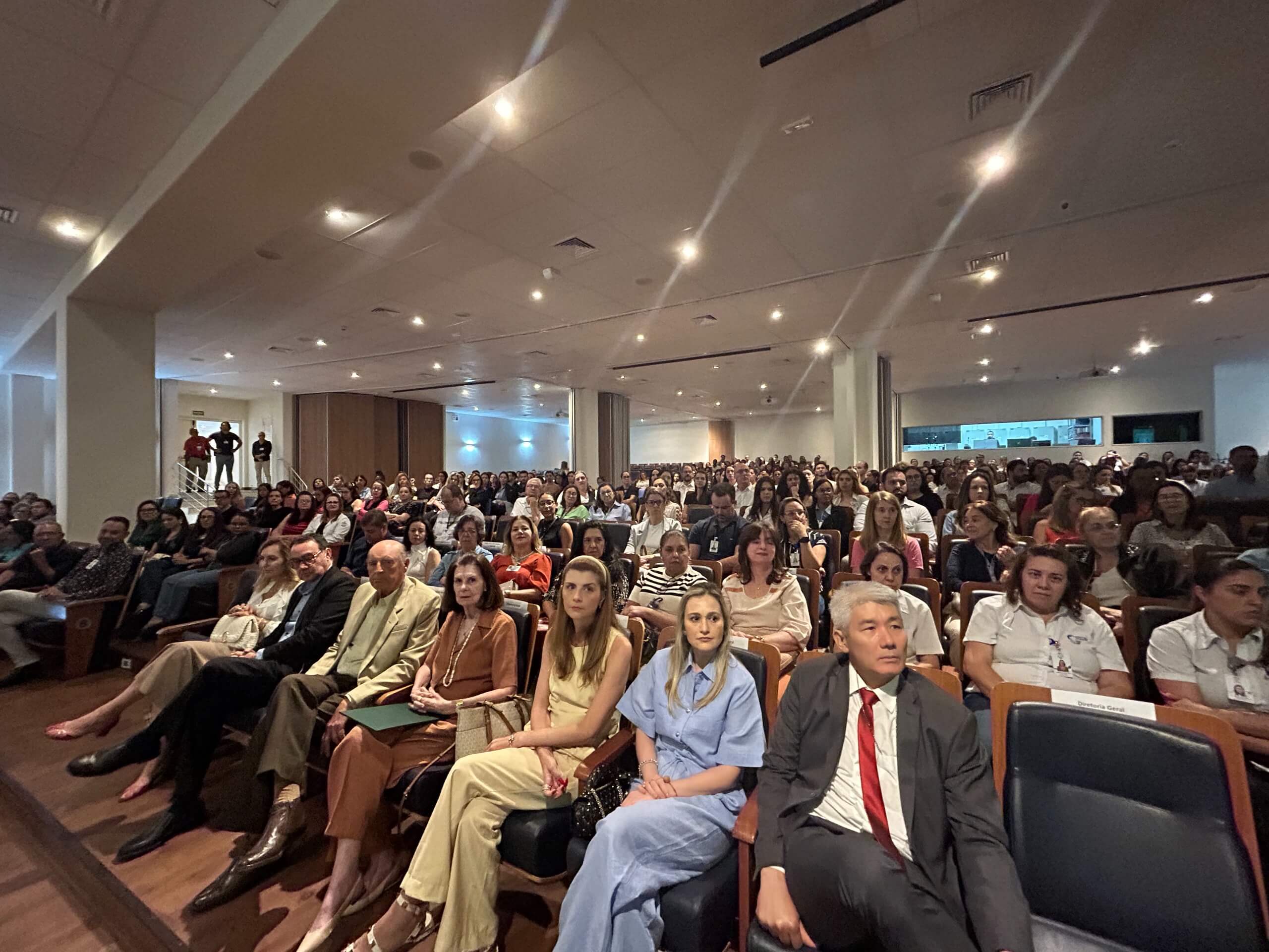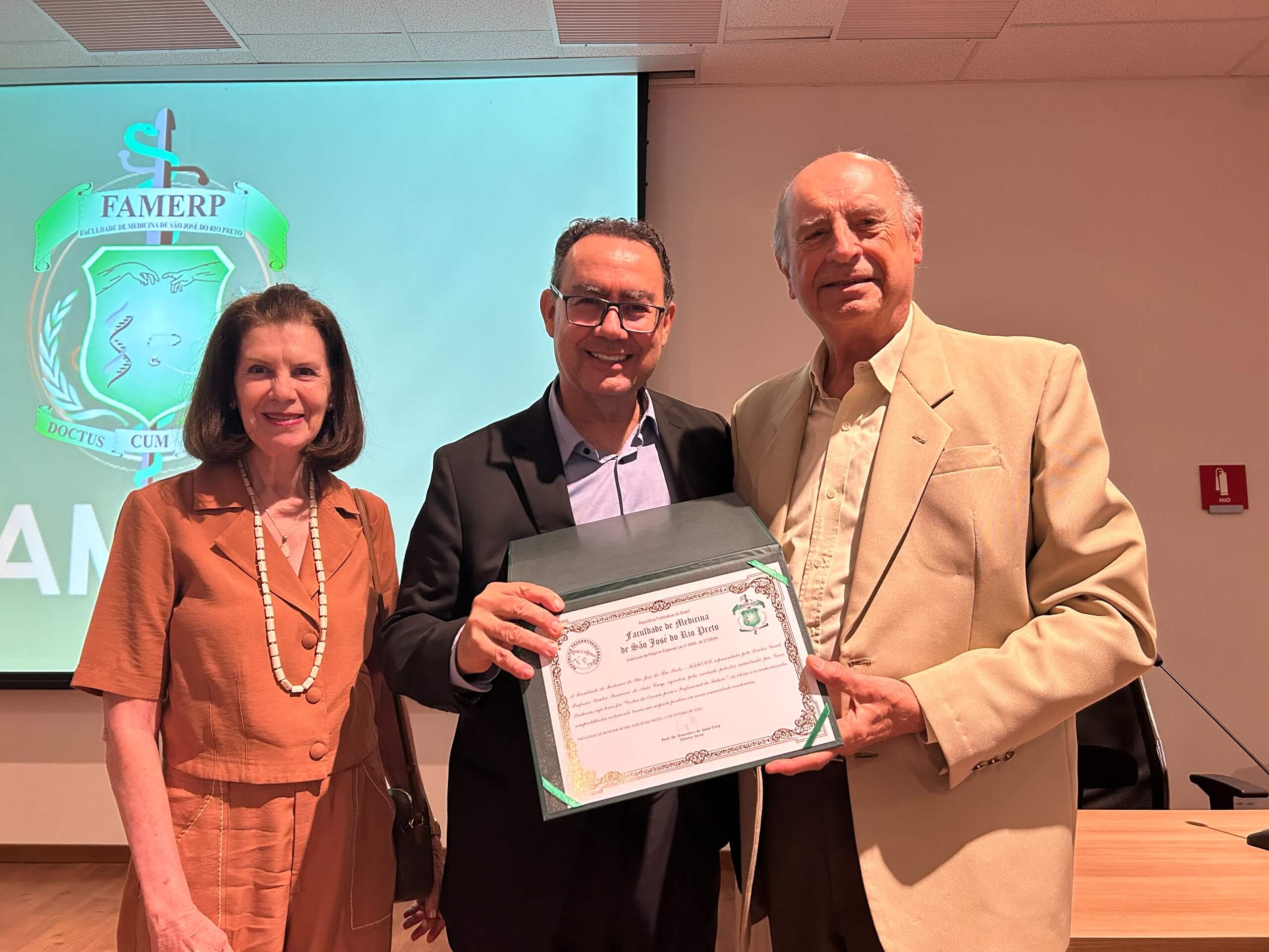 “É um privilégio muito grande estar aqui, porque minha história começou aqui. Me lembro que no 6º ano da faculdade eu escrevia por quatro horas do meu dia no diretório acadêmico com minha máquina de escrever. Nela redigi sobre a mente humana, como surgem os pensamentos, como construímos ideias, como entramos na memória em milésimos de segundo, etc. E foi aqui, na Famerp, que comecei a construir uma teoria sobre o funcionamento da mente, que é a última fronteira da ciência. Quero deixar meu abraço a todos os professores da Faculdade de Medicina de Rio Preto e tantas mentes brilhantes que passaram e que ainda estão aqui. Quando você tem professores que fazem a diferença no teatro social, você tem muito mais condições de sair do hall dos comuns para se tornar uma mente brilhante, numa sociedade altamente estressante”, enalteceu Dr. Augusto Cury.